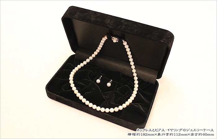 こちらのケースには外箱が付属しております。いろいろなデザインのジュエリーを収納することができますが、真珠(パール)のネックレスとイヤリングのセットが一番保管しやすいデザインです。ご購入頂いたお客様への付属品としてお付けしてみてはいかがでしょうか。