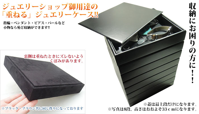 オールフリースペースタイプの重ねて使えるジュエリーボックス(レザータイプ)